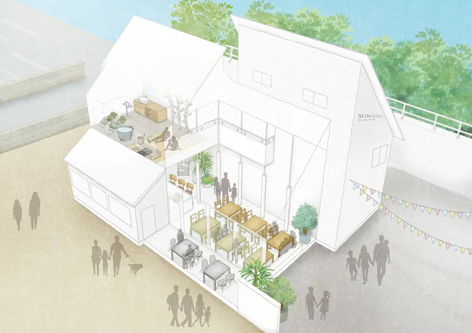 例えるなら、近隣住民の皆様にはビーチへ散歩に行く時のような気楽さで、遠方にお住まいの方々にとっては週末にドライブへ出かける時のような、普段より"半歩先"くらいにある日常を提供したいと考えています。そんな想いを込め、テーマを「Set your Everyday」としました。