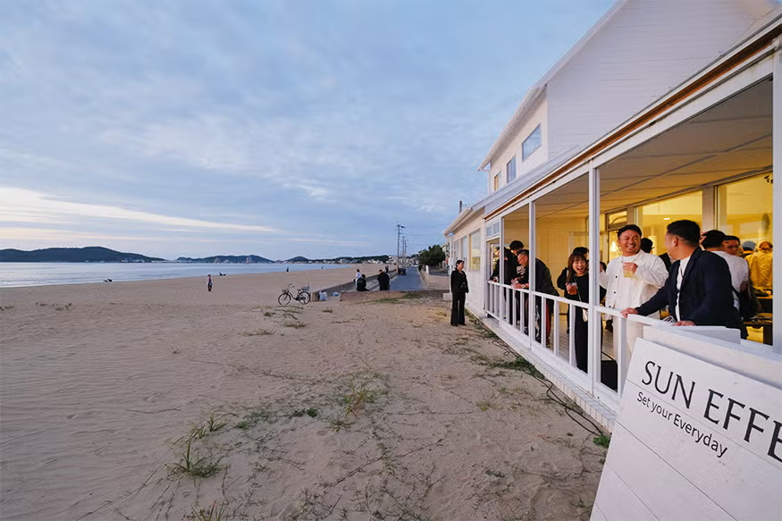 これまで、福間海岸とレストランChipが多くの人々を惹きつけ、その関係性をゆっくりと育んできたように、SUN EFFECTが新たな賑わいと関係を創出しようとしています。食事やサウナ、福間海岸の風景、スタッフとの会話を楽しんでいただくお客様はもちろん、建物再生に携わってくれた業者の方々なども含め、「この建物をもう一度楽しむ」という言語化こそされていない目的に、多くの人々がそれぞれの方法や温度感で関わってくれている現在です。そこに、SUN EFFECTの根本的な存在価値があり、その余地はまだまだ残されていると考えています。